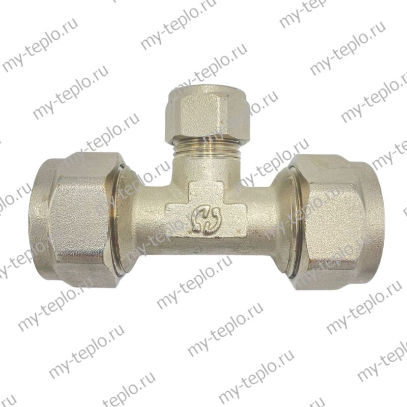 Предназначен для разветвления потока воды на два направления, а именно для соединения методом обжима двух металлопластиковых труб диаметром 26 мм с третьей диаметром 16 мм.